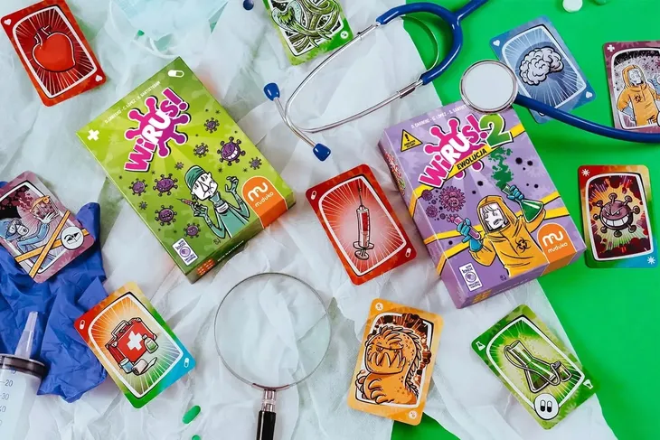 „Wirus 2” to dodatek do znanej już i uwielbianej gry „Wirus” Gdy tylko działania lekarzy zaczęły przynosić skutek, sprawy mocno się skomplikowały... Wirusy ewoluowały... Dalsze badania próbek przechowywanych w laboratorium ujawniły, że wirusy się zmutowały i są jeszcze bardziej odporne i agresywne. Wobec tego nowego zagrożenia, tradycyjne metody leczenia okazują się być teraz bezużyteczne. Aby zniszczyć zmutowane wirusy, konieczne jest zastosowanie szczepionek eksperymentalnych. Twoim kolejnym zadaniem będzie zatem opanowanie obecnej epidemii i powstrzymanie zmutowanych wirusów przed przedostaniem się do populacji. Wymieniaj karty z innymi graczami, wrzucaj wirusy do kwarantanny i koniecznie nie zapomnij ubrać kombinezonu ochronnego. Zawartość opakowania: • 35 kart, • instrukcja.
